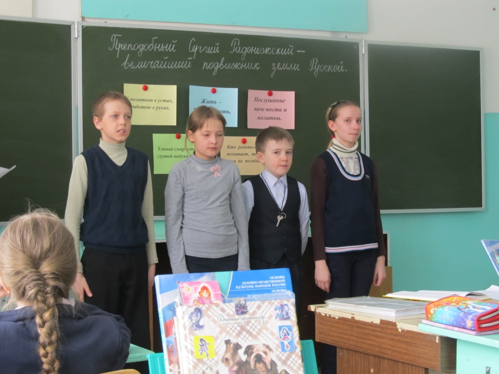 Затем ребята прочли стихи о святом и рассказали подготовленные ими сообщения о самых интересных эпизодах его жизни.