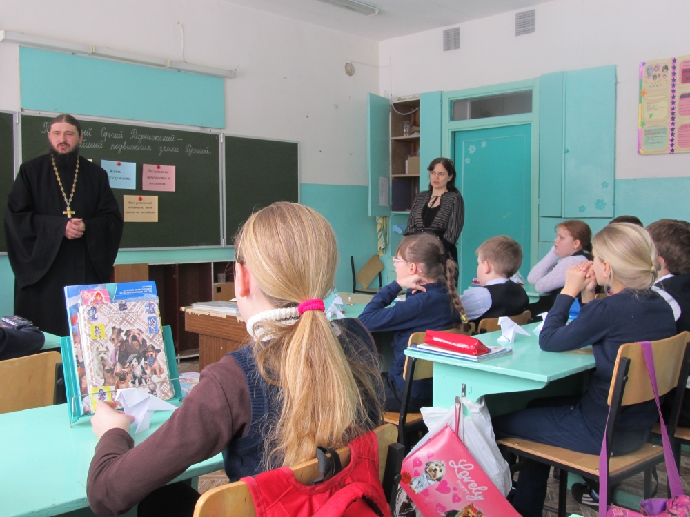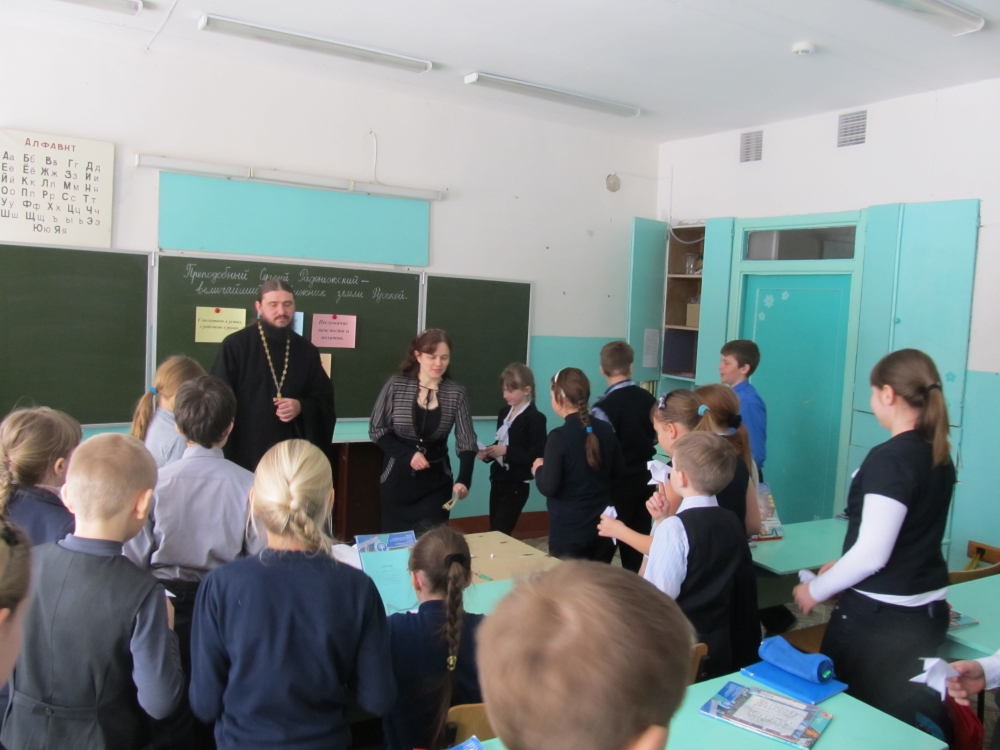 По окончании урока, к детям обратился протоиерей Димитрий Коненков с назидательным словом о необходимости помнить и держать себе за пример земной отрезок жизни преподобного Сергия Радонежского, а при затруднениях в учёбе – обращаться к нему за молитвенной помощью. Все ребята получили от батюшки в подарок книжечки об игумене земли Русской.