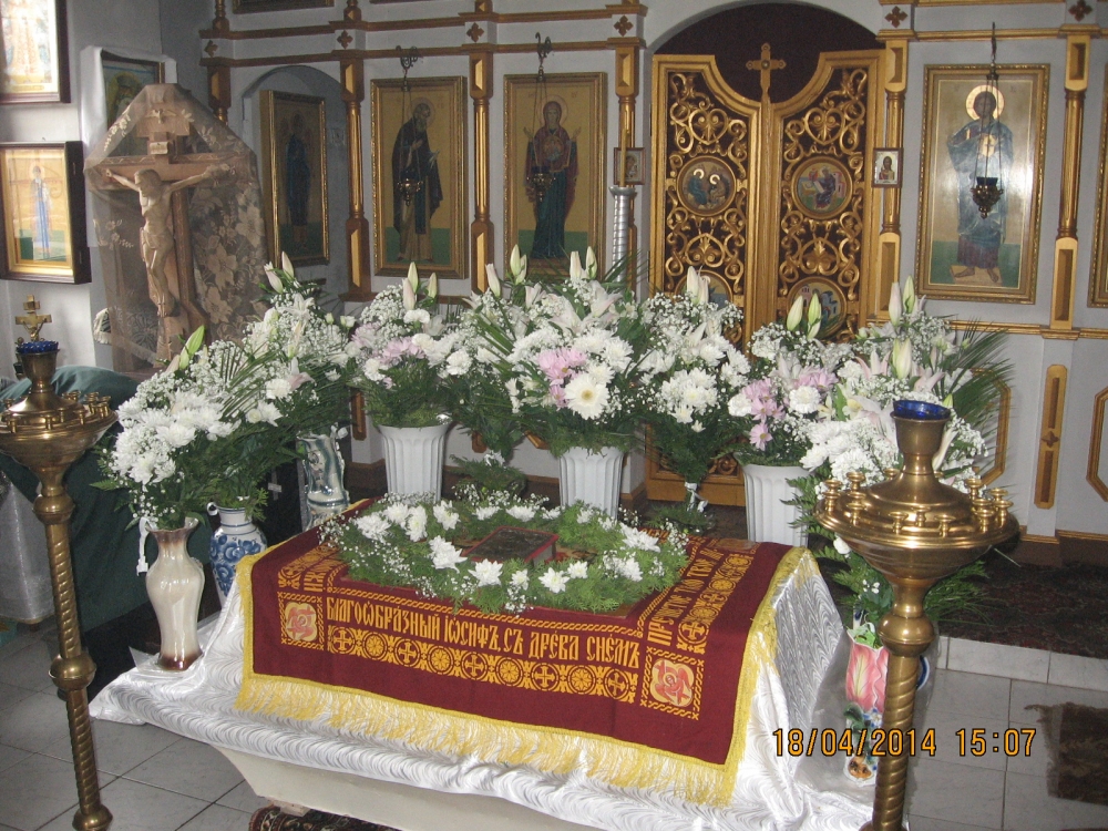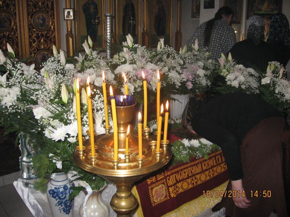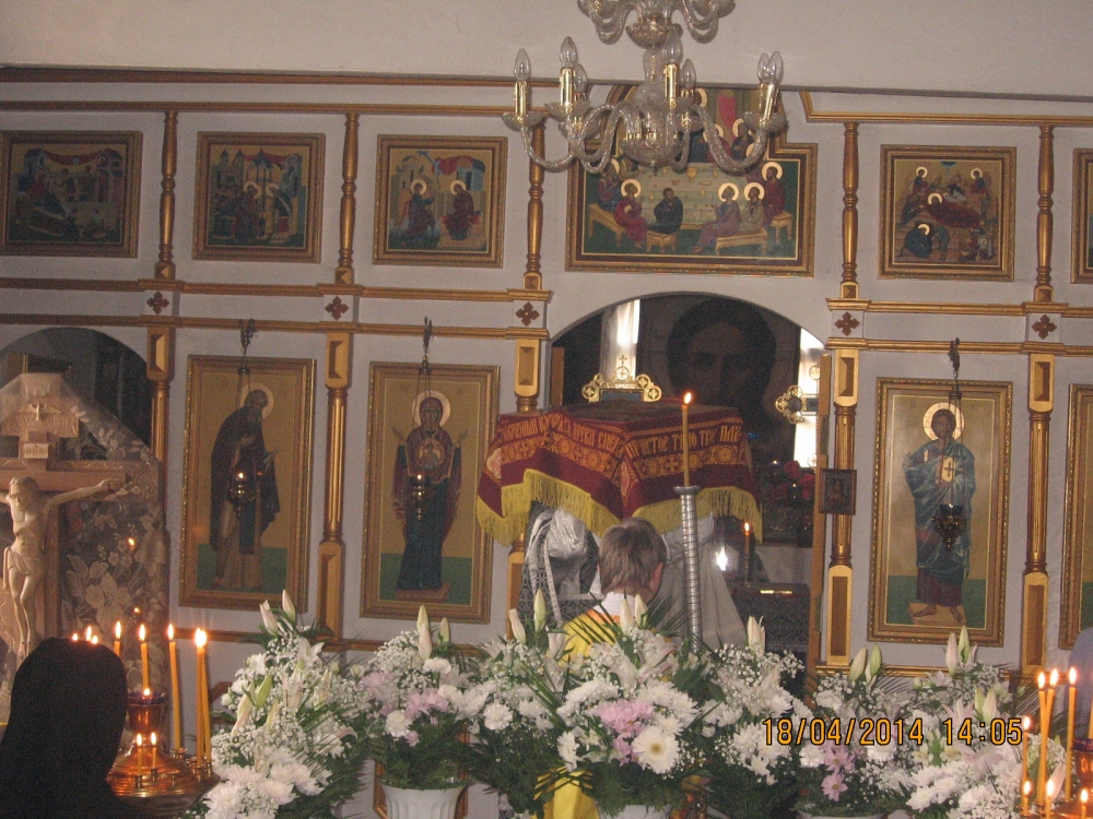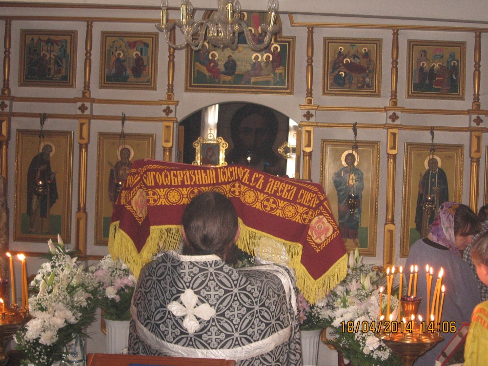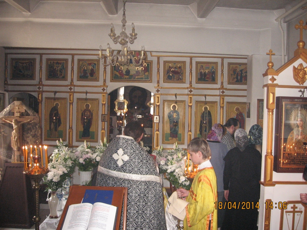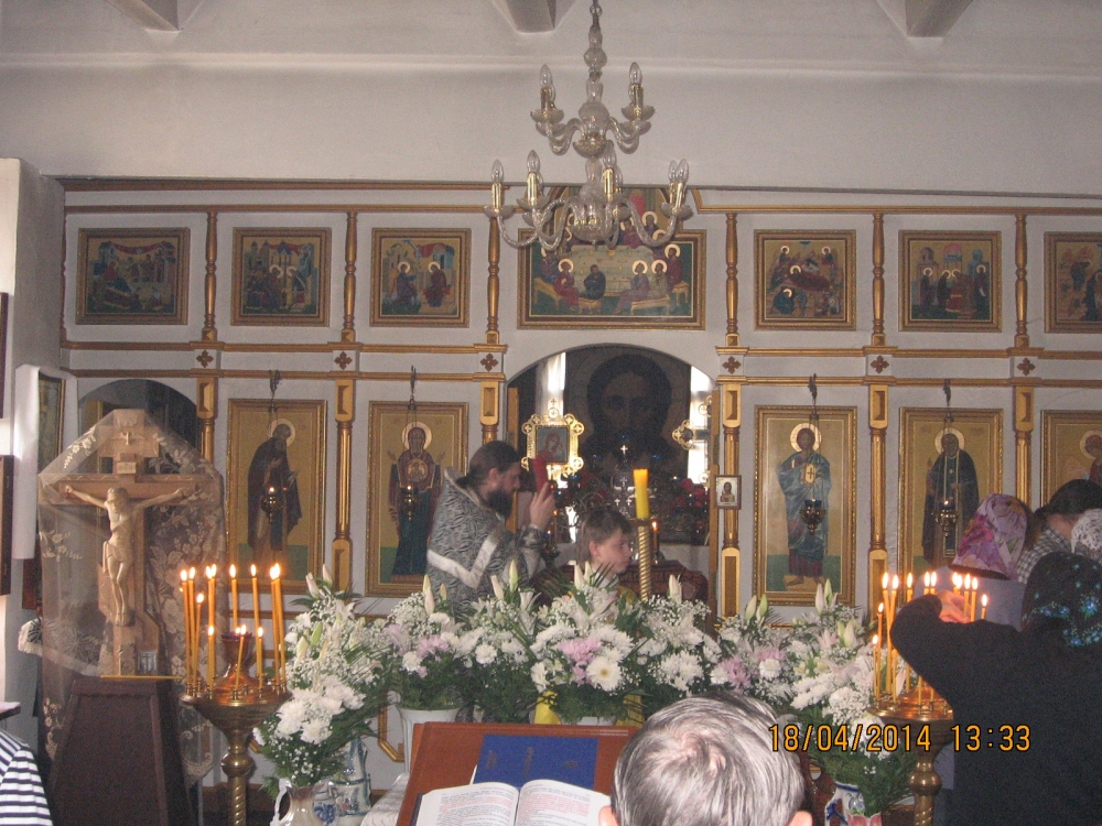 18 апреля 2014 года, в Великую пятницу — день, посвященный воспоминанию Святых спасительных Страстей Господа нашего Иисуса Христа, настоятель храма в честь преподобного Серафима Саровского села Льгово протоиерей Димитрий Коненков совершил вечерню с выносом Плащаницы Спасителя.