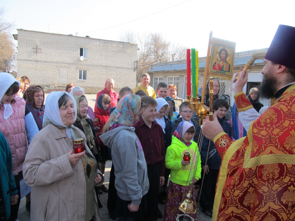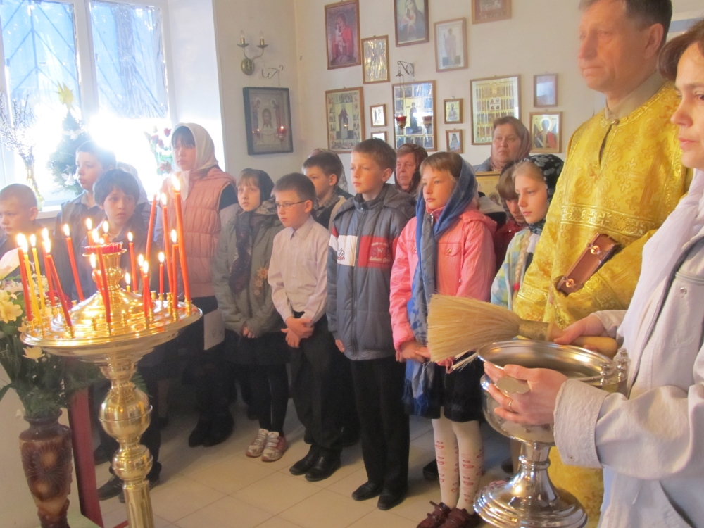 По окончании службы дети подходили к кресту, батюшка щедро окроплял их святой водой и вручал в подарок каждому Пасхальное яичко.