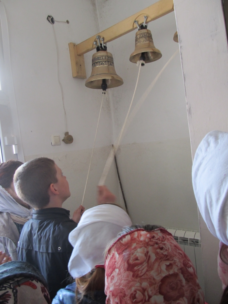В завершении службы, по благословлению настоятеля храма протоиерея Димитрия Коненкова, ребята возвещали Пасхальную радость всему посёлку колокольным звоном.