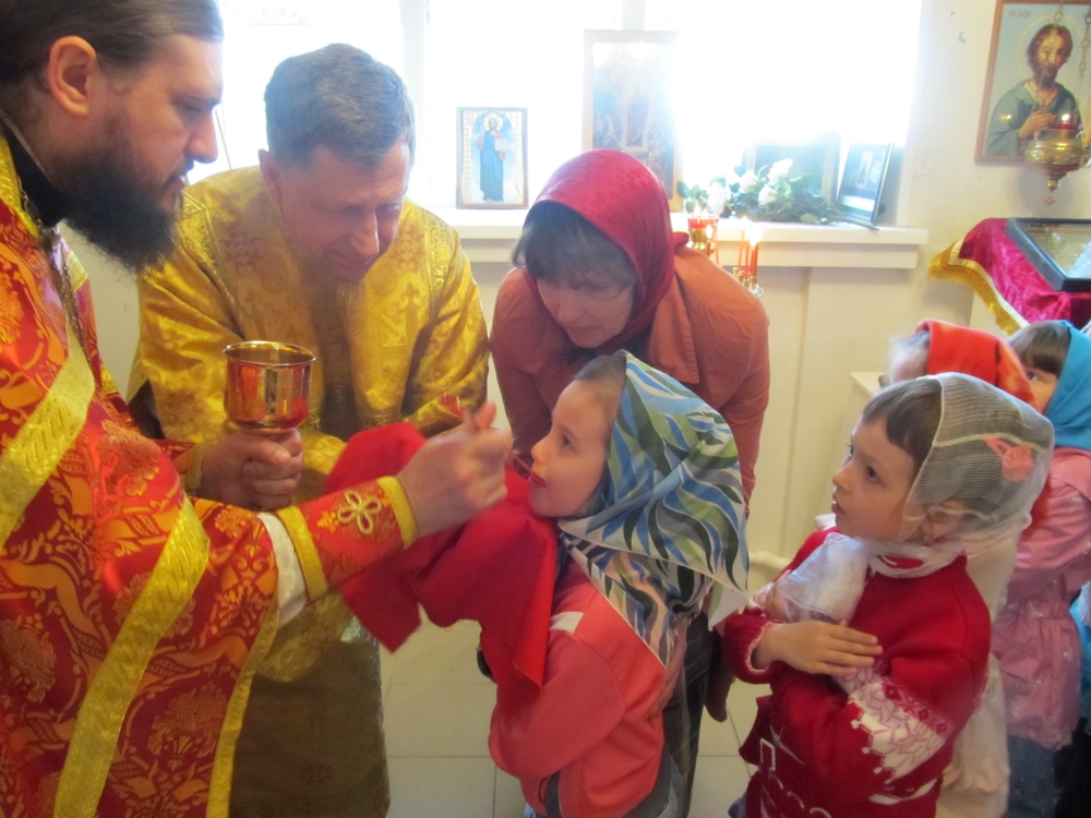 Во вторник Светлой Седмицы в храме Святой Живоначальной Троицы села Александрово совершалась Божественная Литургия. Дети старшей/подготовительной группы Александровского детского сада причастились Святых Христовых Тайн. Для будущих первоклассников перед этим Таинством состоялась первая исповедь.