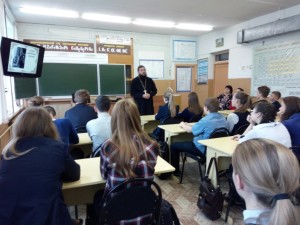 21 октября 2016 в Александровской СШ прошло занятие, посвященное 100-летней годовщине убиения первых новомучеников Церкви Русской. Занятие провели благочинный Рязанского юго-восточного округа протоиерей Димитрий Коненков и его помощник по катехизаторской работе Мария Нистратова. Школьникам рассказали о жизни и мученической кончине святых Царственных страстотерпцев.