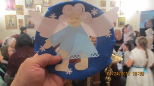 Дети исполнили стихи и спели песни о родившемся Богомладенце. Праздник получился мудрым и радостным. После концерта воспитанники воскресной школы дарили всем зрителям подарки – рождественских ангелочков, которых сделали своими руками. По традиции все юные артисты получили сладкие подарки. Много слов благодарности прозвучало от родителей, прихожан и гостей в адрес любимого храма, батюшки и всех устроителей сегодняшнего праздника.