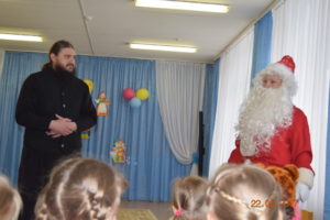 22 февраля 2017 года в Александровском детском саду прошёл праздник «Пришла к нам масленица», гостем которого стал благочинный юго-восточного округа протоиерей Димитрий Коненков и ….Дед Мороз, заплутавший при возвращении в свои ледяные чертоги после новогодних утренников по причине потери навигатора. Зимний гость впервые слышал о масленице, так как знаком только с праздниками Крещения и Рождества Христова и традициями их встречи. Поэтому ребята детского сада вместе с ведущими и отцом Димитрием рассказывали Дедушке Морозу о традициях весеннего праздника.